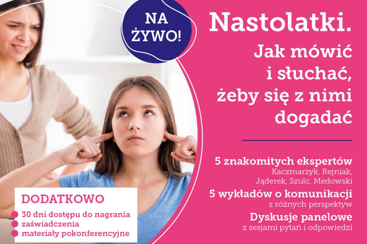 Zapraszamy na konferencję online o komunikacji z nastolatkami pt. “Nastolatki. Jak mówić i słuchać, żeby się z nimi dogadać”, na którą już dzisiaj serdecznie zapraszamy!